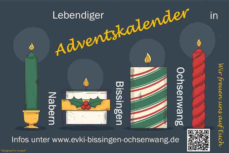 Auch in diesem Jahr wird es in Nabern, Bissingen und Ochsenwang wieder einen „Lebendigen Adventskalender“ geben. Viele werden sich noch an eindrucksvolle und berührende Aktionen und Veranstaltungen unterschiedlichster Art im letzten Jahr erinnern.